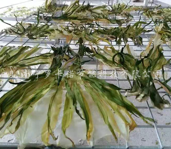 烘干房(霸王花烘干机,剑花烘干机)温度逐渐从干球55℃提升至60℃,湿球由38℃上升至42℃。此温差的提升时间掌控在2个小时内逐渐完成,不可超过60℃的温度范围。霸王花经过9-12个小时的初始、中度烘干和强排湿基本达到七成干燥。